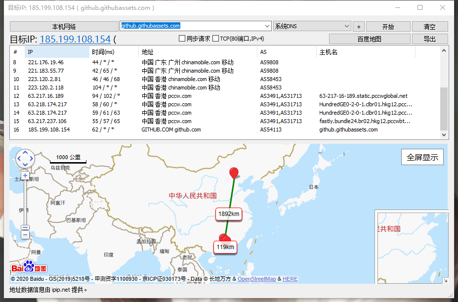 都是搞开发的,都会用F12看看网络或者资源请求的地址是什么,以上面耗时最慢的地址为例,域名为:github.githu.com